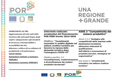 Sito realizzato con spesa agevolata a valere sul POR FESR Veneto 2014-2020, Azione 3.3.4 Sub C DGR_/2020” DGR n. 1390/2020